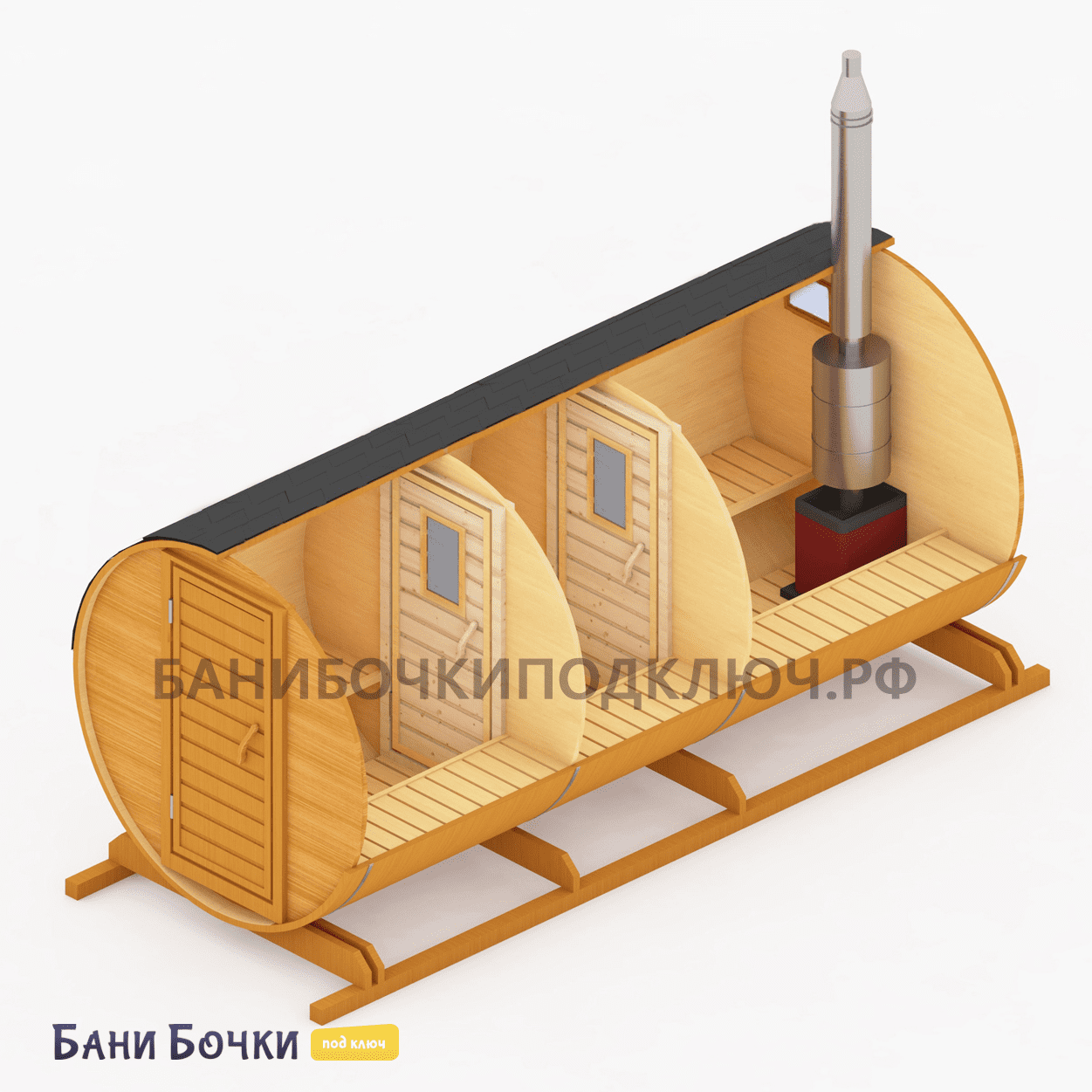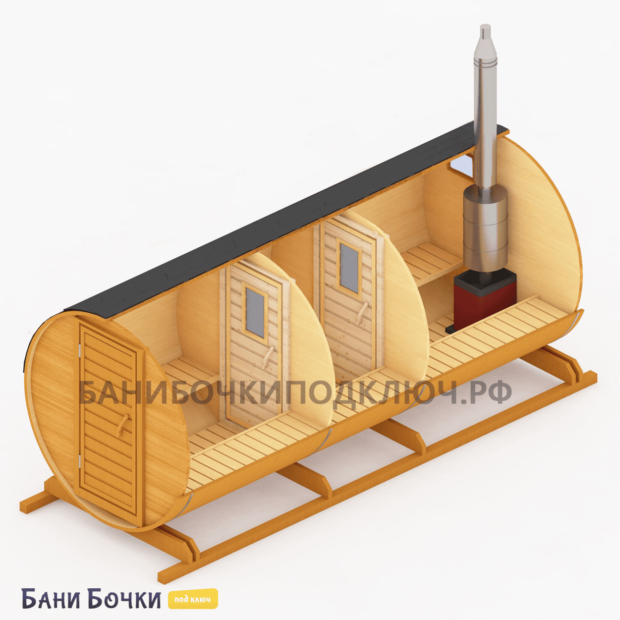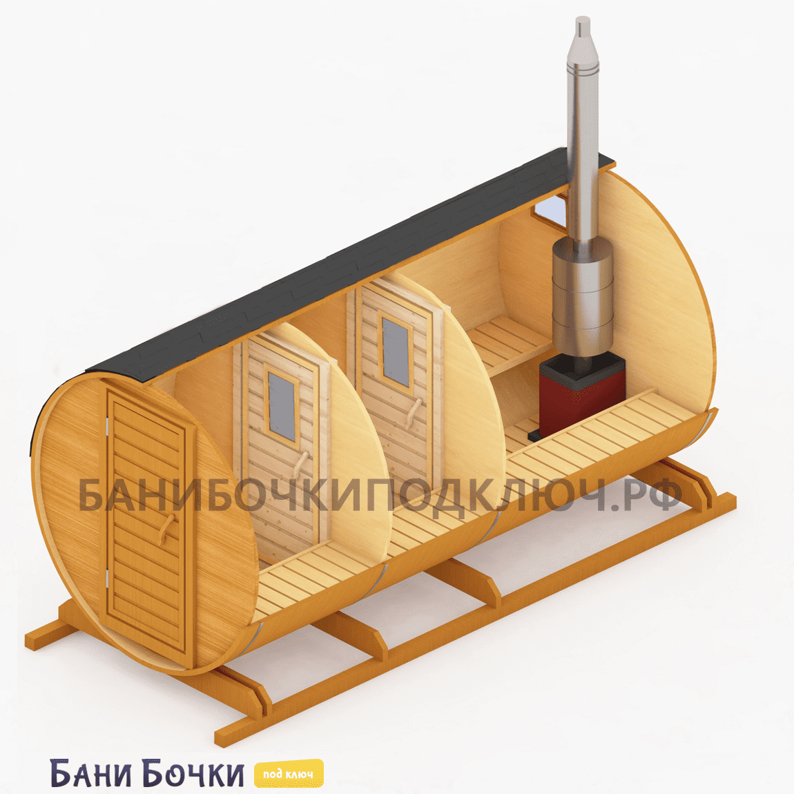 Порадуйте себя, свою семью и друзей! Достаточно всего 25-30 минут времени для прогрева парной. Если вы хотите дешево купить квадро или круглую баню бочку в Крыму под ключ от производителя из бруса по низкой цене с доставкой и с установкой на участке дачи в городе, районе или области, то смело оставляй заявку на этом нашем официальном сайте прямо сейчас. Перед тем, как доставить её к вам, каждая собранная конструкция проходит тщательный осмотр, проверку, упаковку и погрузку в специальный транспорт. В зависимости от размера (2, 3, 4, 5, 6 метров), в ней могут отдыхать одновременно от 4 до 8 человек! На официальном сайте представлено множество недорогих проектов готовых и перевозных бань с печкой из настоящей северной сосны для строительства на вашей даче. Обязательно посмотрите видео-отзывы наших довольных клиентов. Поможем с выбором лучшего варианта!