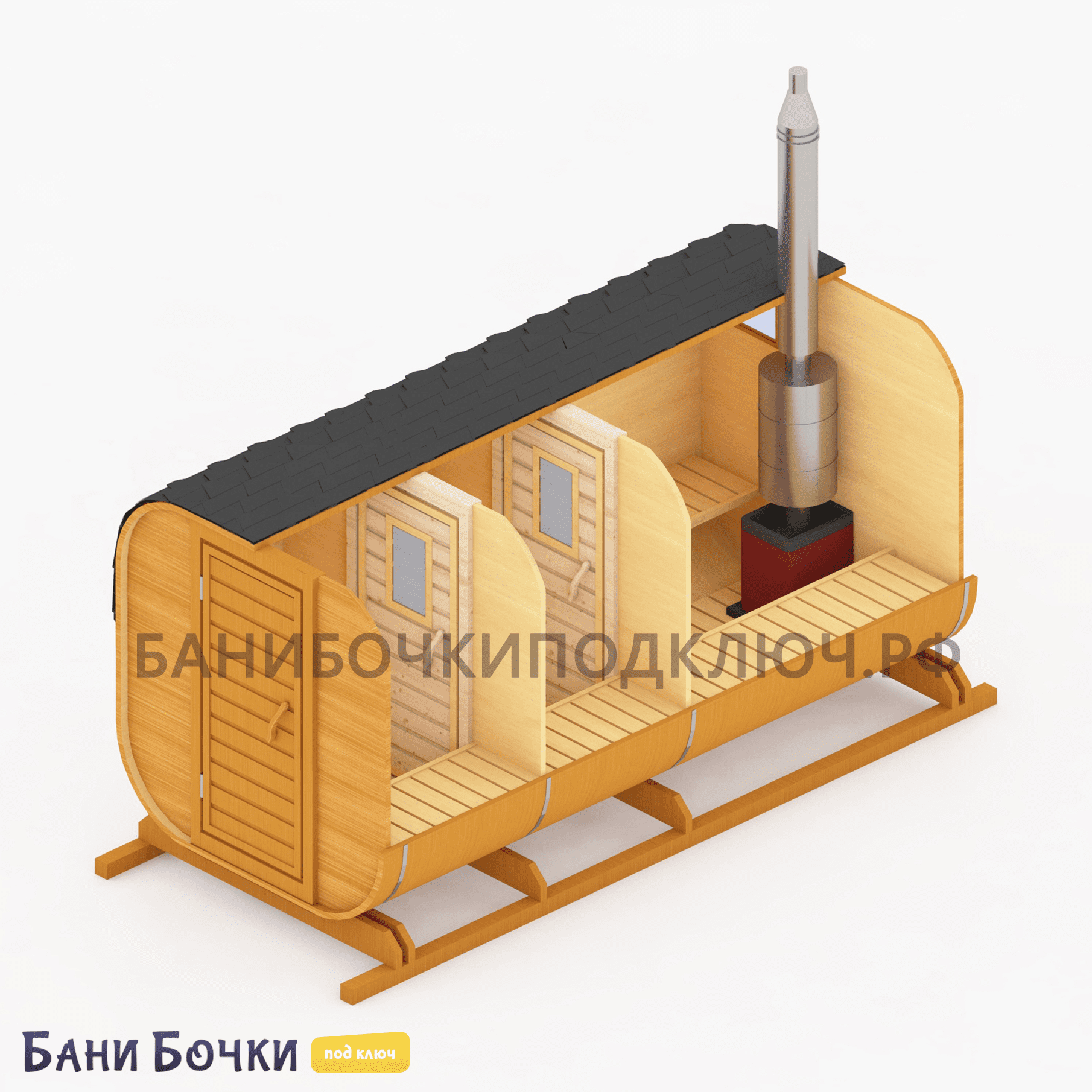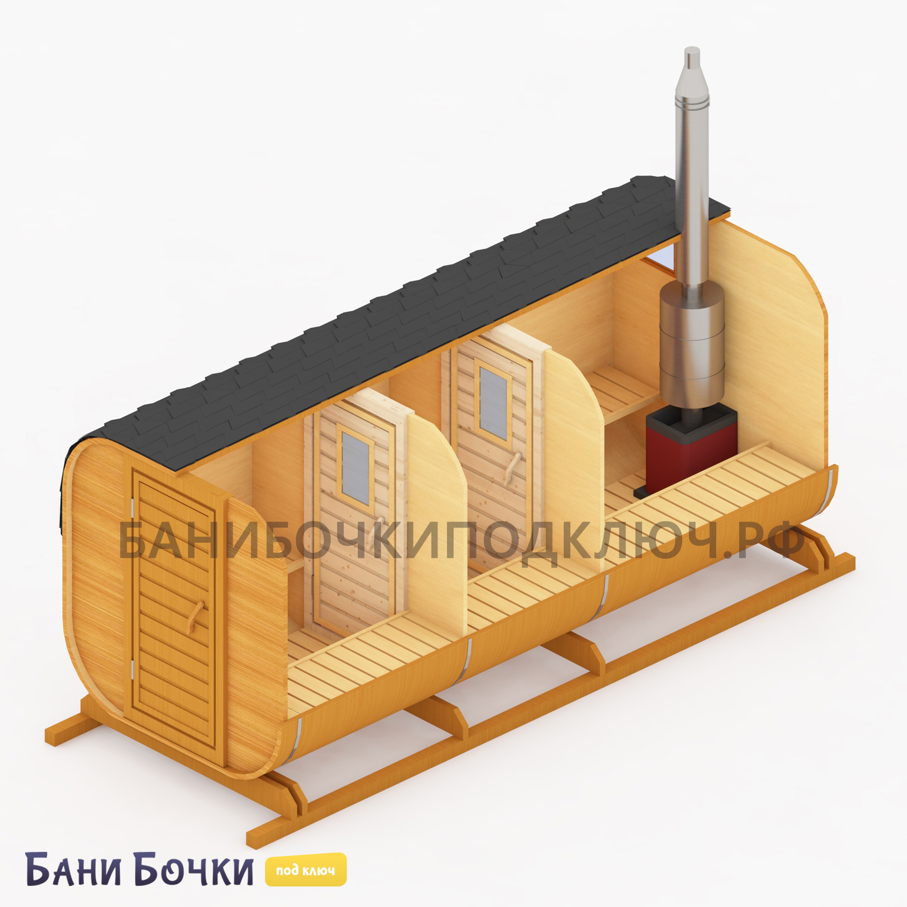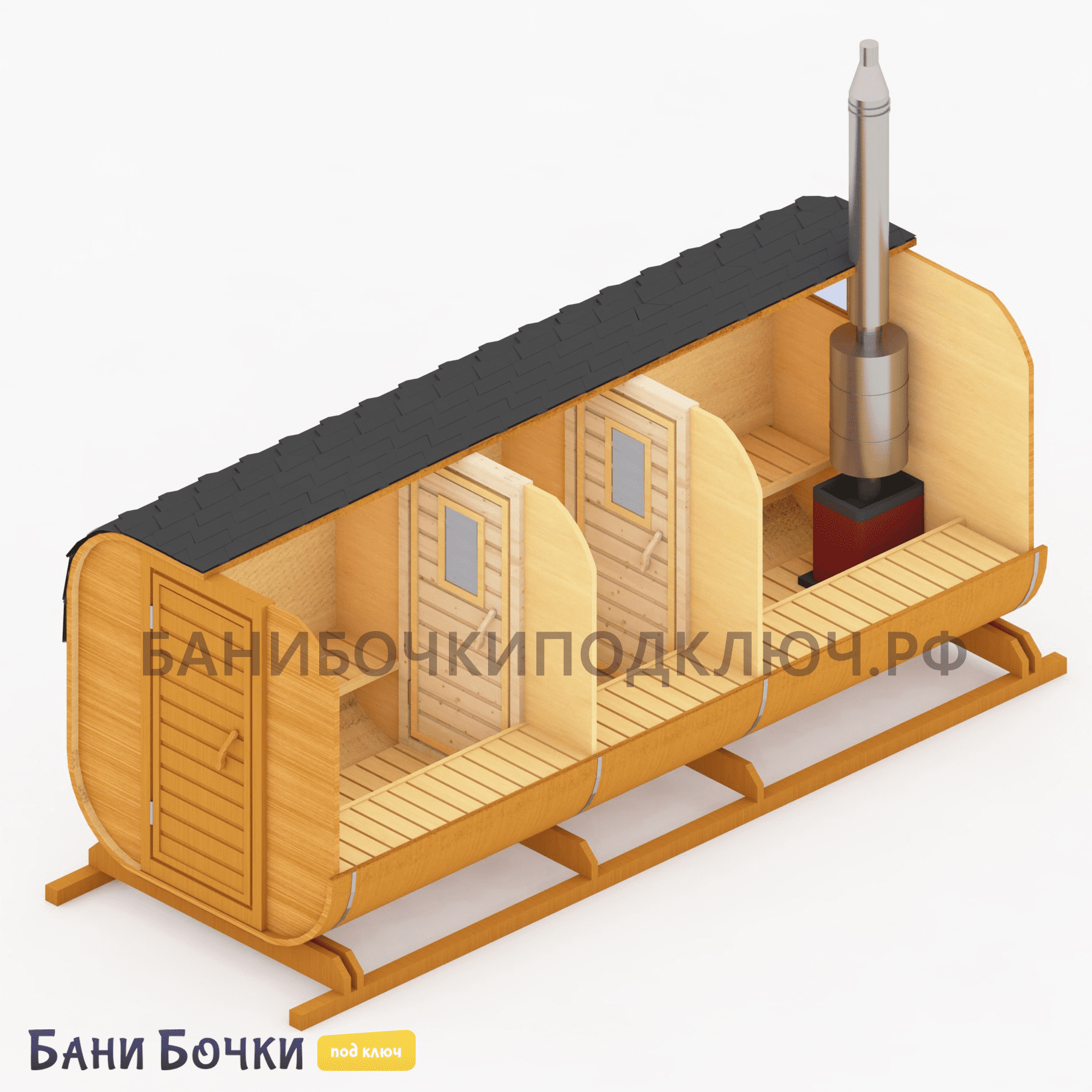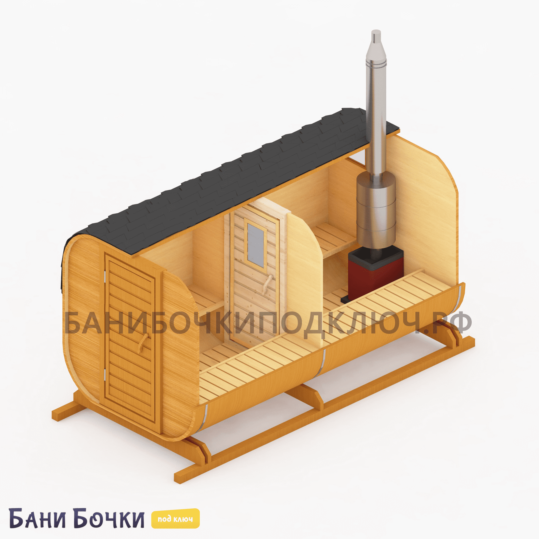 Порадуйте себя, свою семью и друзей! Достаточно всего 25-30 минут времени для прогрева парной. Если вы хотите дешево купить квадро или круглую баню бочку в Крыму под ключ от производителя из бруса по низкой цене с доставкой и с установкой на участке дачи в городе, районе или области, то смело оставляй заявку на этом нашем официальном сайте прямо сейчас. Перед тем, как доставить её к вам, каждая собранная конструкция проходит тщательный осмотр, проверку, упаковку и погрузку в специальный транспорт. В зависимости от размера (2, 3, 4, 5, 6 метров), в ней могут отдыхать одновременно от 4 до 8 человек! На официальном сайте представлено множество недорогих проектов готовых и перевозных бань с печкой из настоящей северной сосны для строительства на вашей даче. Обязательно посмотрите видео-отзывы наших довольных клиентов. Поможем с выбором лучшего варианта!