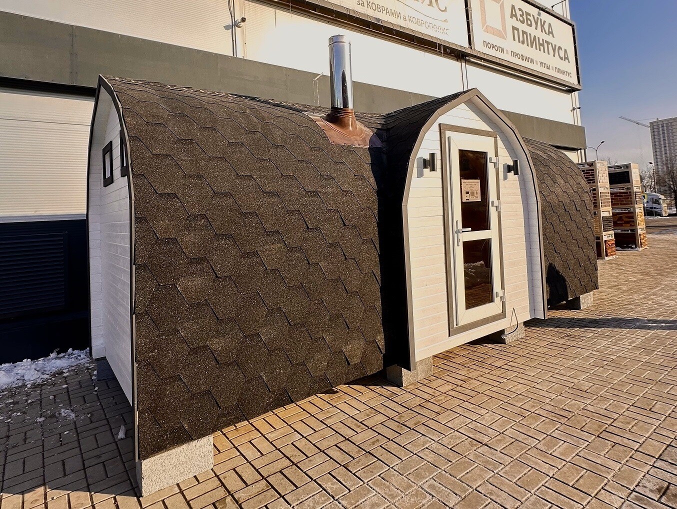 Баня Викинг 6 x 2,2 м с арочным входом и проходной мойкой