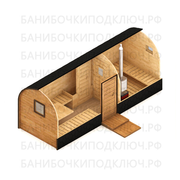 Баня парус 6 x 2,3 м с проходной мойкой
